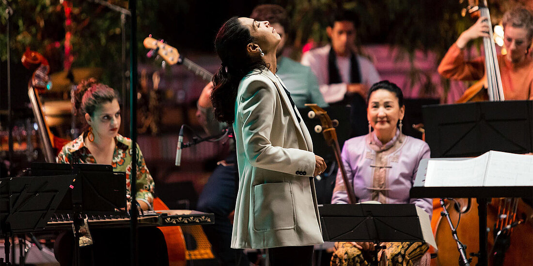 Das transkulturelle Bridges Kammerorchester vereint seit Herbst 2019 freiberufliche Musiker:nnen und ihre Instrumente aus verschiedensten Regionen des europäischen, asiatischen und amerikanischen Kontinents. Die Orchestermitglieder sind Expert:innen für arabische, persische und europäische Klassik, Jazz, zeitgenössische Musik, osteuropäische Folklore sowie verschiedene Formen zentralasiatischer und lateinamerikanischer Musik. In kokreativen Prozessen komponieren bzw. arrangieren sie einen Großteil ihres Repertoires selbst. Mehr Informationen zum Bridges Kammerorchester finden Sie HIER.